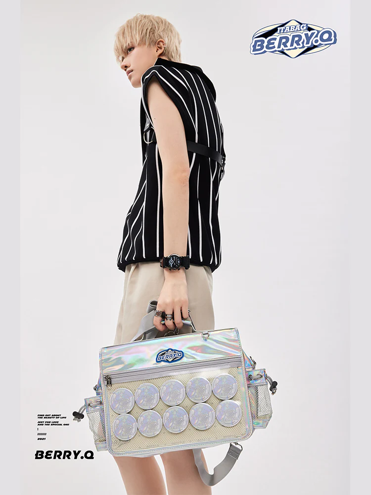 ā¤BerryQ Soft Series Casual Ita Bag - Anime Badge Ita Bag, Unisex Style, Commuter Backpack/Crossbody Bag, 3-Way Designā¤